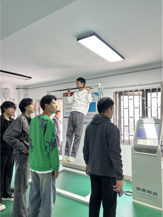 清晨的运动场早已热闹起来,检录处的同学有序排队、核对信息,志愿者们穿梭在各个测试区域,耐心引导、主动帮扶。50米跑赛道上,发令枪响后,学子们如离弦之箭般奋力冲刺,耳畔的风声与加油声交织成最激昂的旋律;立定跳远场地,一次次屈膝、摆臂、起跳,每一次腾空都凝聚着力量与技巧;肺活量测试前,同学们深吸一口气,尽全力将青春的气息注入仪器,数字的跳动见证着蓬勃的生命力;坐位体前屈的伸展、引体向上的坚持、800/1000米跑的耐力比拼,每一个项目都是对体能的挑战,更是对意志的磨砺。
