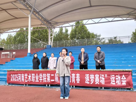教务处处长李迅发表致辞。她指出,运动会不仅是体育技能的比拼,更是意志品质的考验,希望全体运动员秉持“友谊第一,比赛第二”的精神,在赛场上挥洒汗水、超越自我,同时鼓励师生以此次运动会为契机,养成热爱运动的习惯,凝聚团结奋进的力量。随后,运动员代表来自幼儿教育学院李银璐,裁判员代表公共教学部杨少洁,分别宣誓,承诺将以公平、公正、拼搏、诚信的态度参与和保障本次赛事。
